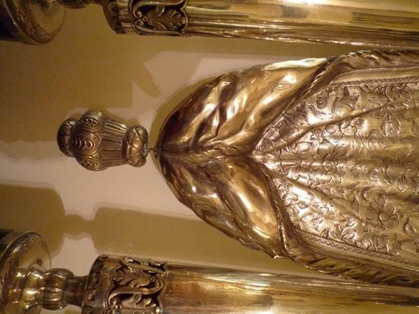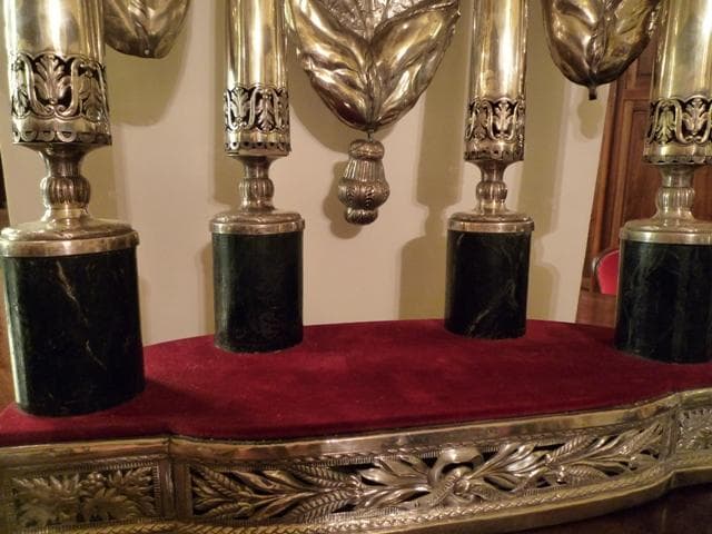 argent : fonte, décor en relief ; bois : taillé, doré, décor en relief