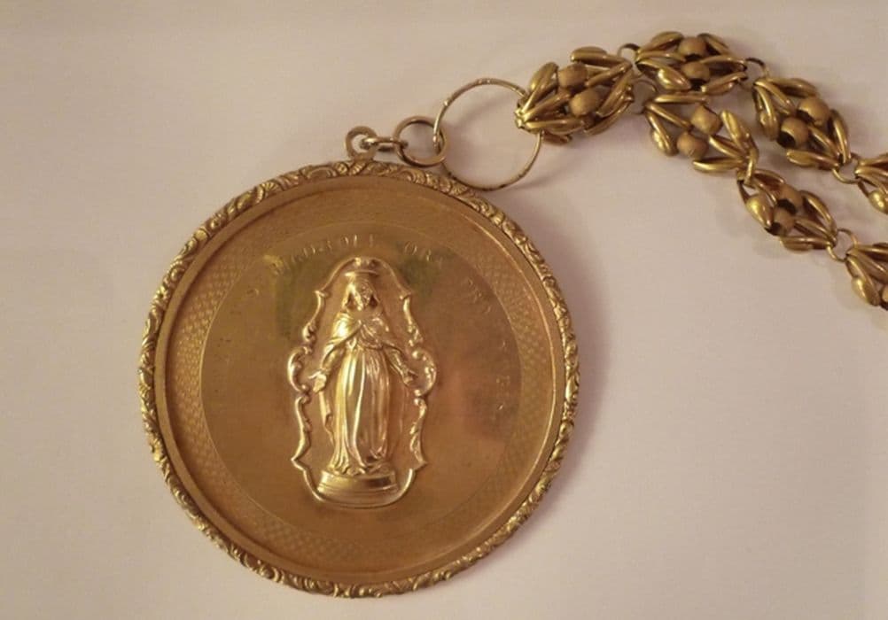 Médaille représentant saint Joseph et l'Enfant Jésus datée de 1844 et sa chaîne en or du 19e siècle