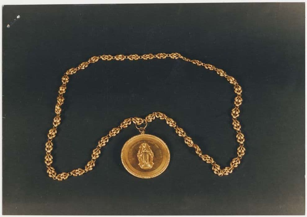 POP | Plateforme ouverte du patrimoineMédaillon représentant la Vierge à l'Enfant couronnée et sa chaîne en or du 19e siècle