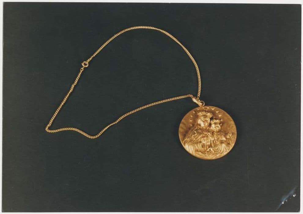 Médaillon représentant la Vierge à l'Enfant couronnée et sa chaîne