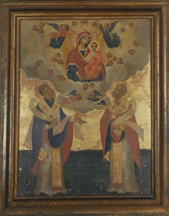 POP | Plateforme ouverte du patrimoineTableau : Apparition de la Vierge à l'Enfant et saints évêques : Saint Spiridon de Chypre et de Corfou et Saint Nicolas de Myre , atelier ionique