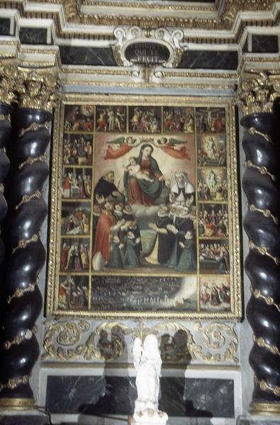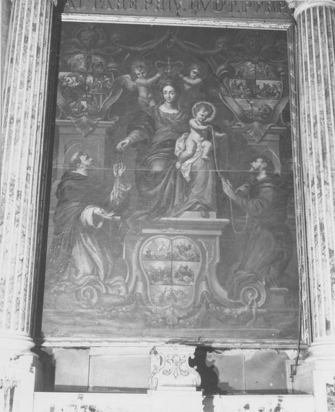 tableau : Vierge à l'Enfant donnant le Rosaire à saint Dominique et le Cordon de l'ordre à saint François