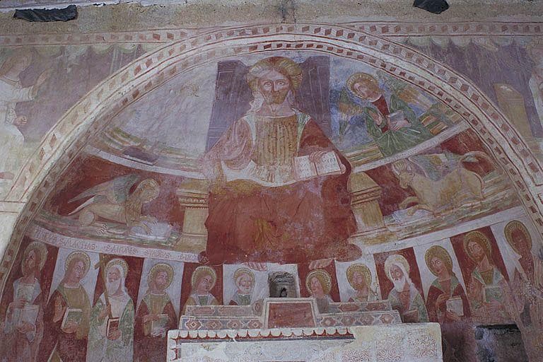 peintures monumentales : Le Christ en Majesté entouré du Tétramorphe, Les Apôtres, L'Annonciation