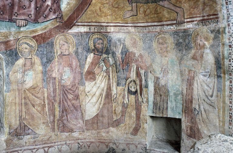 peintures monumentales : Le Christ en gloire entre la Vierge et saint Jean, Les Apôtres