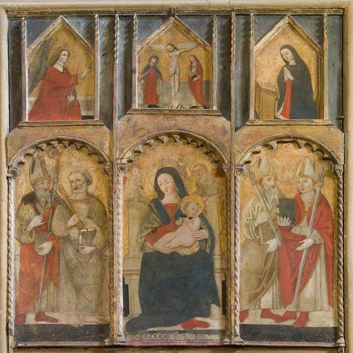 POP | Plateforme ouverte du patrimoinetriptyque (panneaux peints) : Vierge à l'Enfant entre saint Pierre, saint Vincent, saint Césaire et saint Martin, La Crucifixion, L'Annonciation