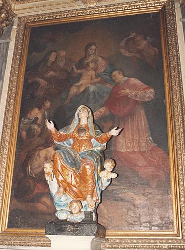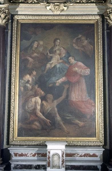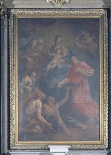 tableau : Vierge à l'Enfant entourée de sainte Anne, saint Joachim et saint Charles Borromée