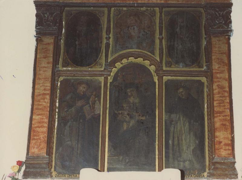 Date (au dessus du panneau de Dieu le père) : ANNO DOMINI 1642. Inscription (au bas du panneau) : QUESTA OPERA I'HA FATIA IL NOBILE GIACINTO MURACCIOLE RETTORE DI QUESTA CHIESA.