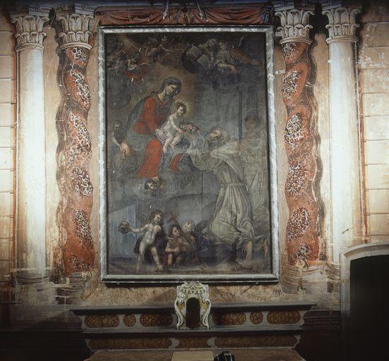 retable, tableau : Saint François remettant un bouquet de fleurs à l'Enfant Jésus