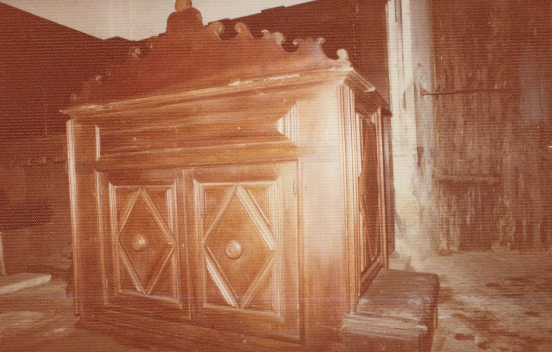 Inscription (en haut de l'armoire) : DIE 28 IUNII FAT. Date (en haut de l'armoire) : 1681. Inscription (2 figurent sur le couronnement) : SILENTIUM ET BEDIENTAMDATE.