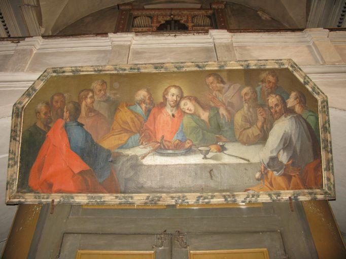 Oeuvre exécutée vers 1789, provenant du réfectoire du couvent dit d'Alziprato, et attribuée à Vicente Suarez, peintre espagnol dont l'activité est attestée en Ligurie et en Haute-Corse. Cène d'après Jan Van der Straet, dit Pietro Candido (oeuvre diffusée par la gravure)