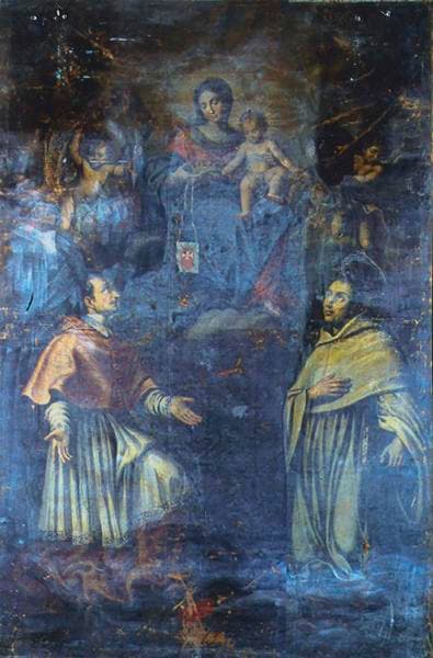 tableau : Saint Charles Borromée et saint Simon Stock aux pieds de la Vierge