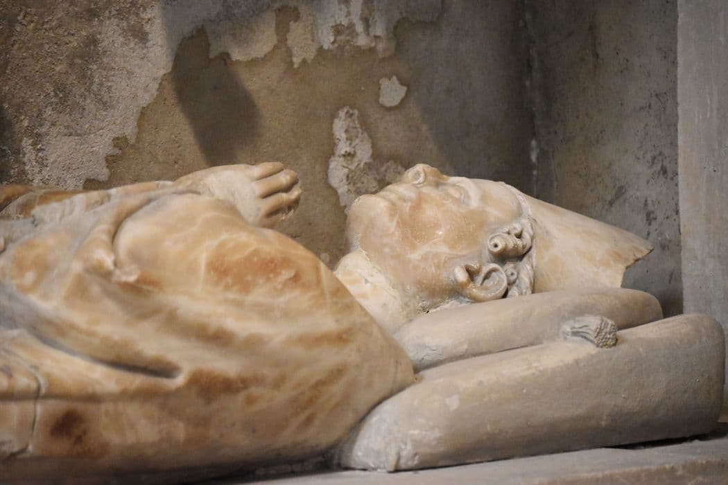 Stèle funéraire du cardinal Arnaud de Via fondateur de l'église mort en 1335.