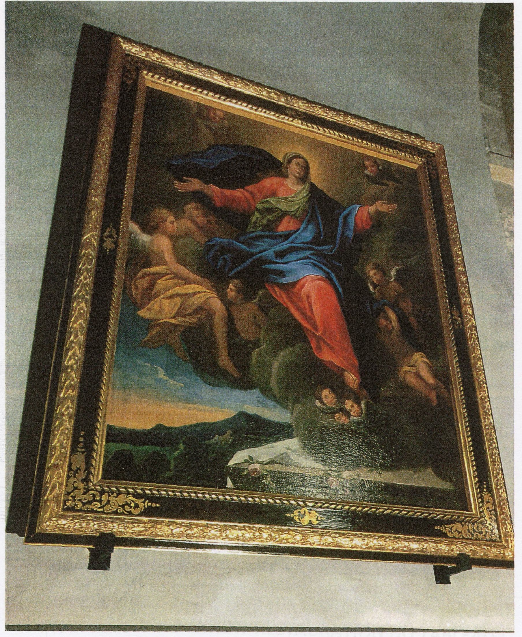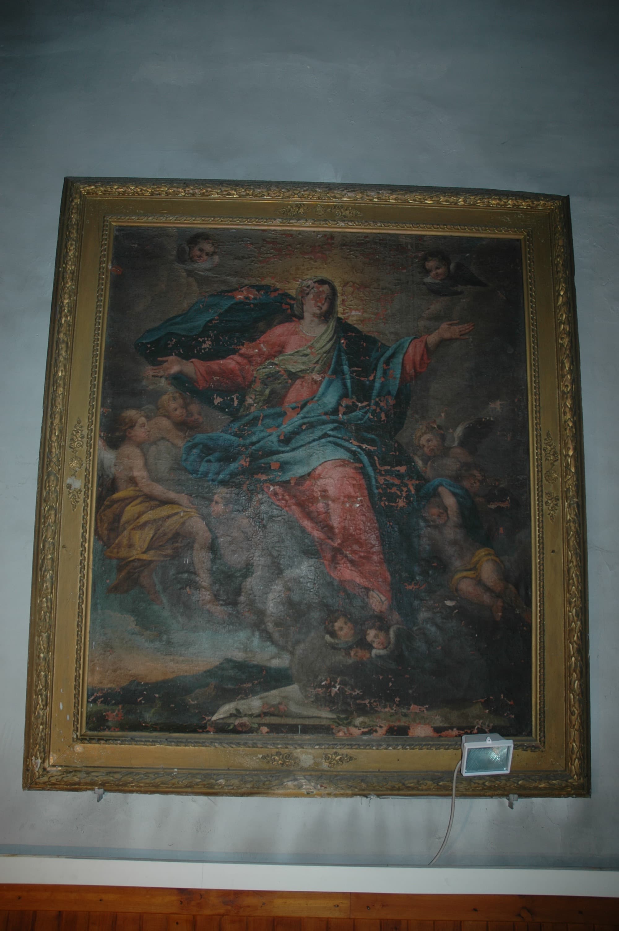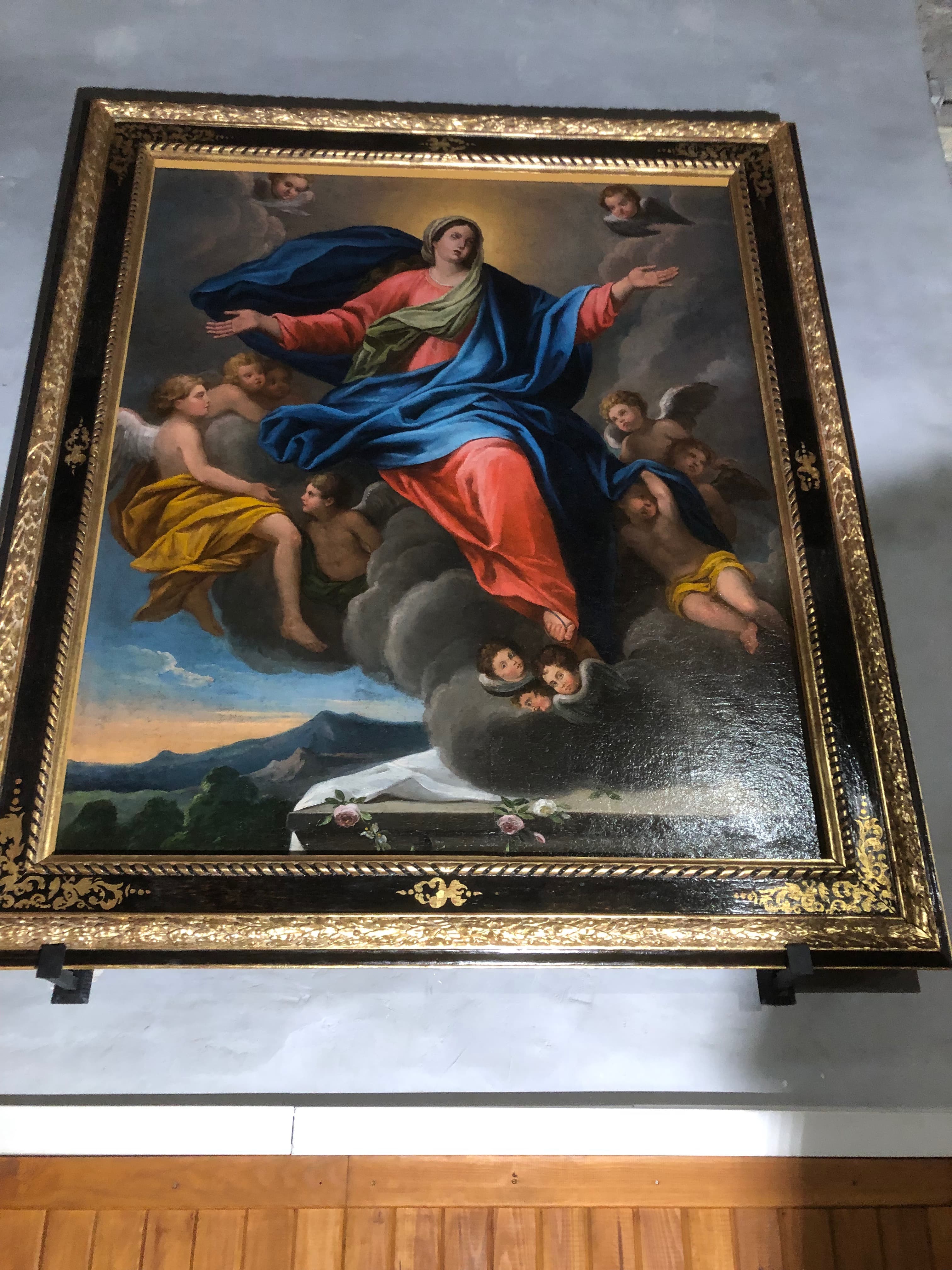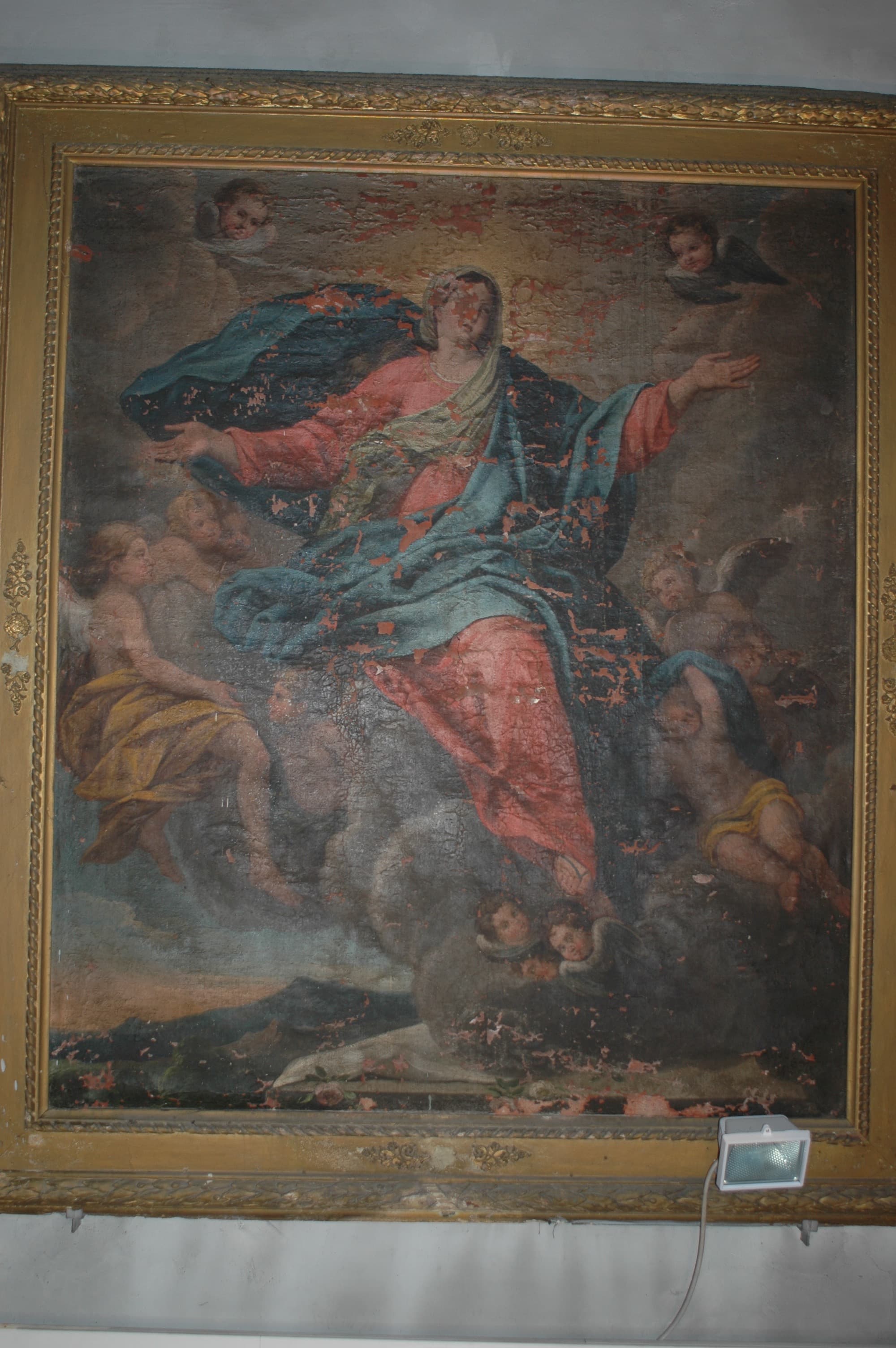 Tableau et son cadre en bois doré représentant l'Assomption de la Vierge.