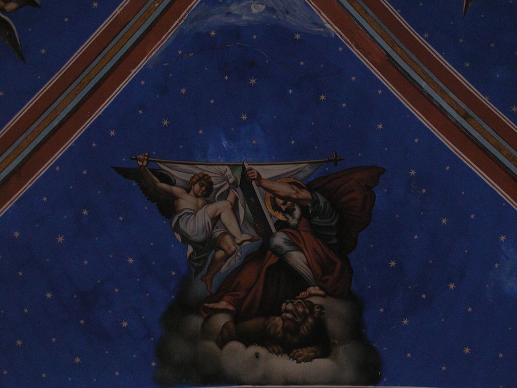 Peintures murales représentant au premier plan les 4 évangélistes, et au second plan une voûte étoilée.