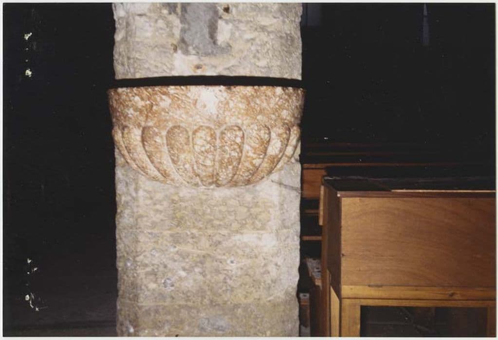 en pendant avec un autre bénitier, vaisseau central, premier pilier sud