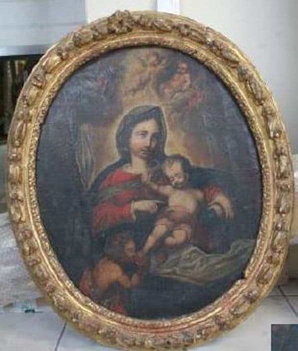 tableau et son cadre : Vierge à l'Enfant en présence de saint Jean-Baptiste