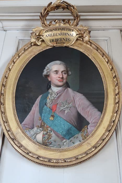 Sur un cartouche situé en partie sommitale du cadre : DONNE PAR LE ROI / A M LE CARDINAL / DE BERNIS / EN 1776