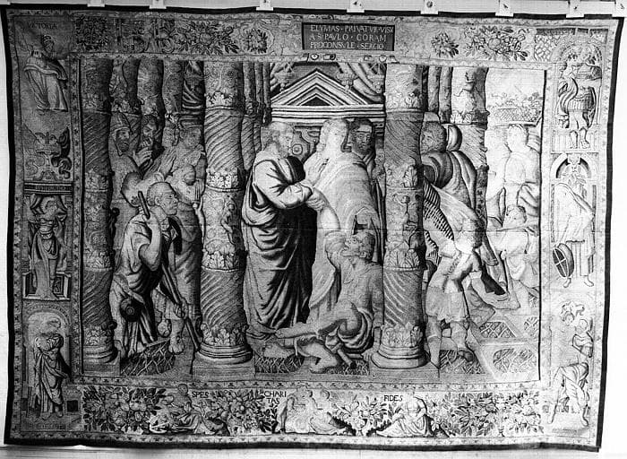 pièce murale : Lapidation de saint Etienne (tenture composée de la Remise des clefs à saint Pierre, la Lapidation de saint Etienne, un Miracle de saint Paul)