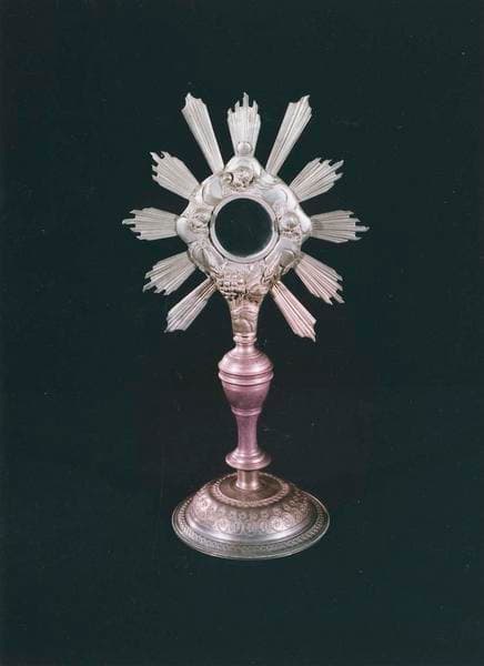 Sur le pied circulaire se trouve une hampe à renflements en forme de balustre.
