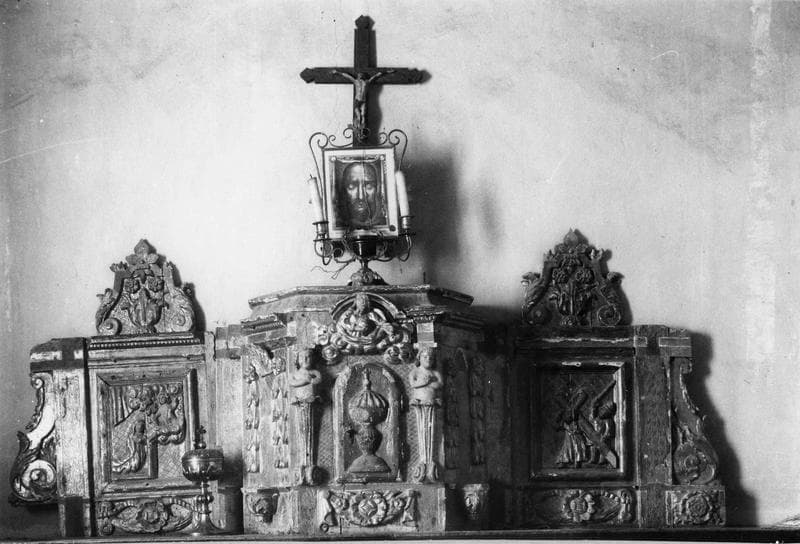 POP | Plateforme ouverte du patrimoinetabernacle, retable (contre-table), 2 bas-reliefs : l'Annonciation, le Portement de croix