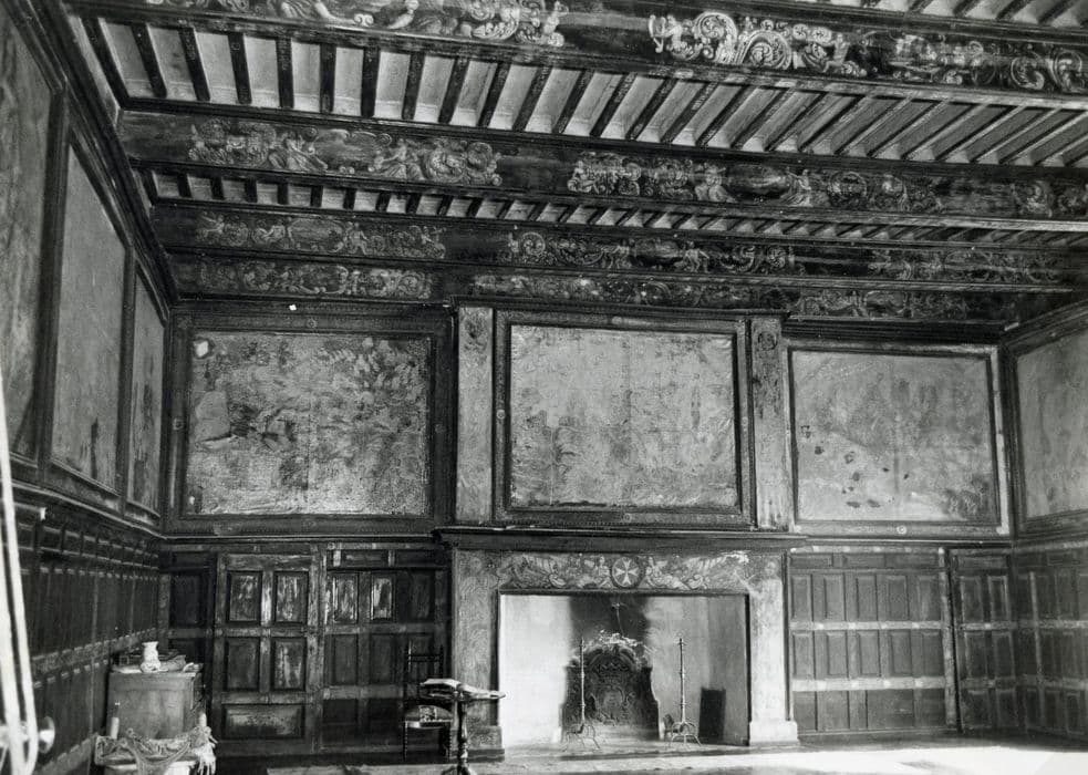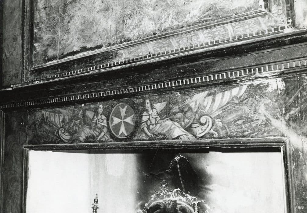 La salle dite des chevaliers de Malte avec son décore au premier étage. Décor peint de la salle dite des chevaliers de Malte, 16e siècle.