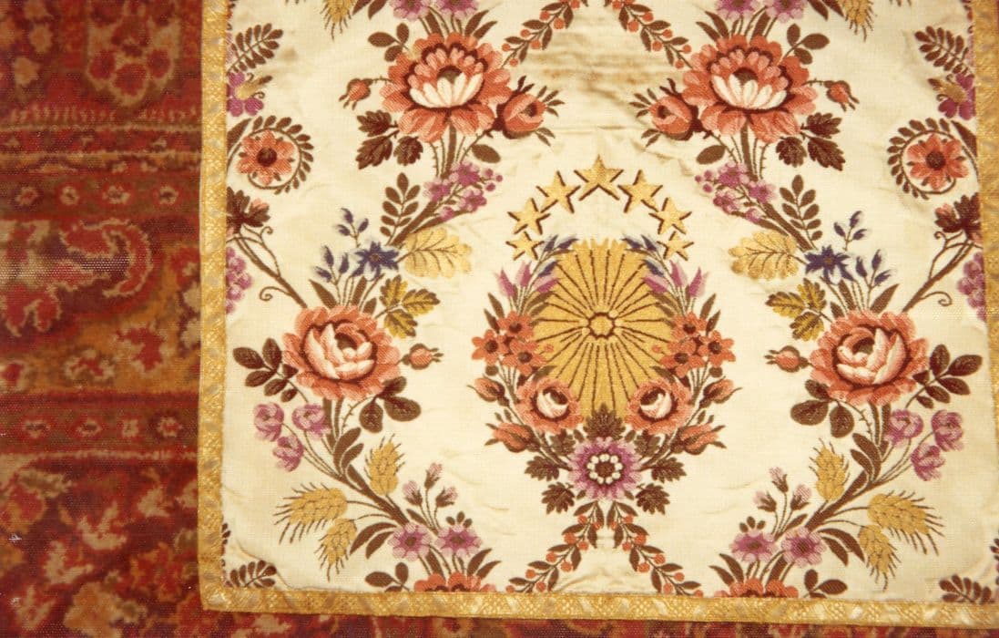 manipule (4) ; étole de clerc (2) ; voile huméral ; voile de calice ; bourse de corporal