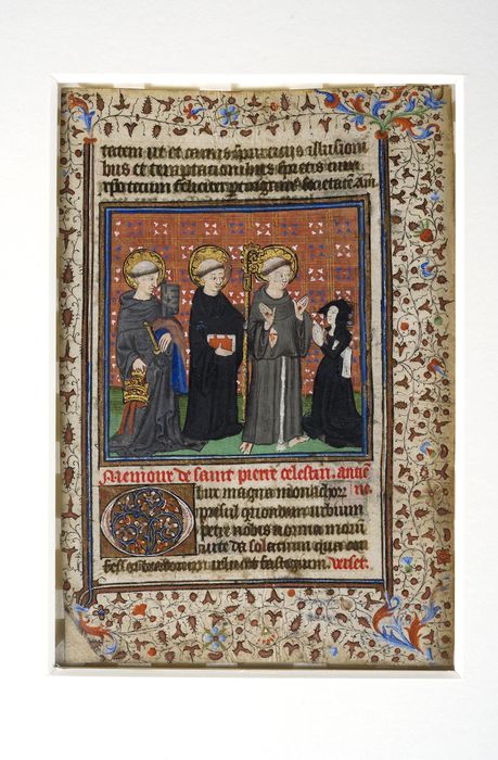 enluminure : saint Pierre célestin saint Bénigne saint François-d'Assise et une religieuse