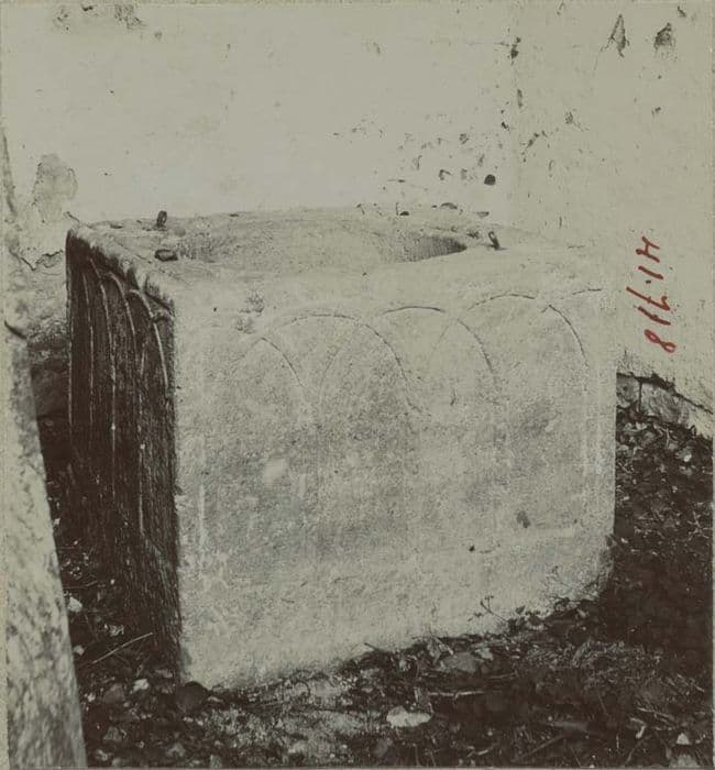 Fonts baptismaux de plan carré, portants sculptés un méplat, des arcs plein-cintre entrecroisés. Une face est brute.