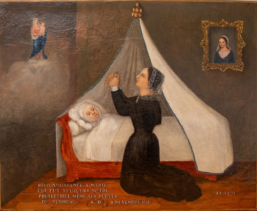 inscription : Reconnaissance à Marie, qui fut toujours notre protectrice, même aux portes du tombeau. A. D. 9 novembre 1846. Date : 1846.