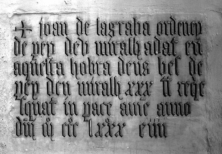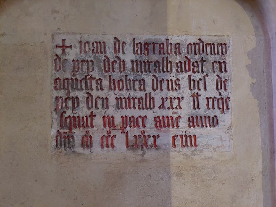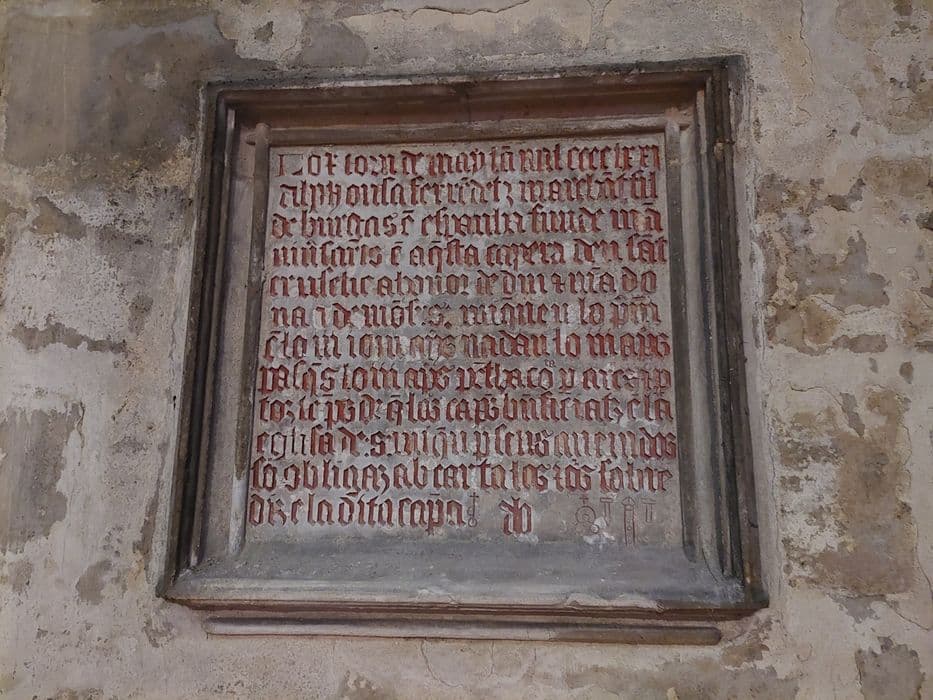 Dans la chapelle sud-est, inscription de 1384 relatant l'accomplissement d'un le g destiné à la construction de cette chapelle. Dans la chapelle vers le nord-est, inscription de 1471 rappelant une fondation d'anniversaire par un Espagnol. Dans la chapelle vers le nord-ouest, épitaphe en partie cachée par un retable.