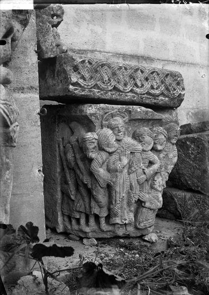 Parmi ces débris, il est des spécimens très curieux de la sculpture romane dans nos pays : la trahison de Judas, l'ange gardant le sépulcre, des rinceaux, des entrelacs. Le tout de lignes très riches, avec des méplats multiples, des perles.