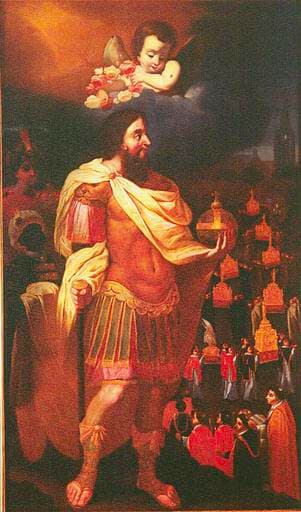 tableau : Charlemagne précédant les châsses des corps saints portés à Sainte-Eulalie