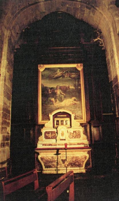 autel de la chapelle Sainte-Colombe, son retable et son tableau : La Découverte du corps de sainte Colombe