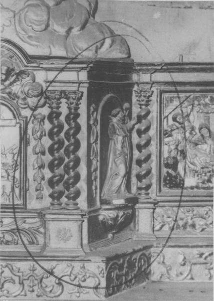 Les statuettes du retable sont signalées volées en 1962 ; date du vol indéterminée.