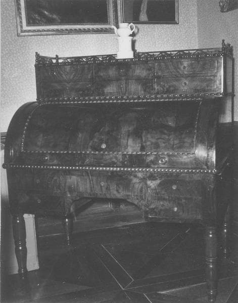 armoire (2) ; secrétaire ; table ; fauteuil (14) ; chaise ; tabouret (2)