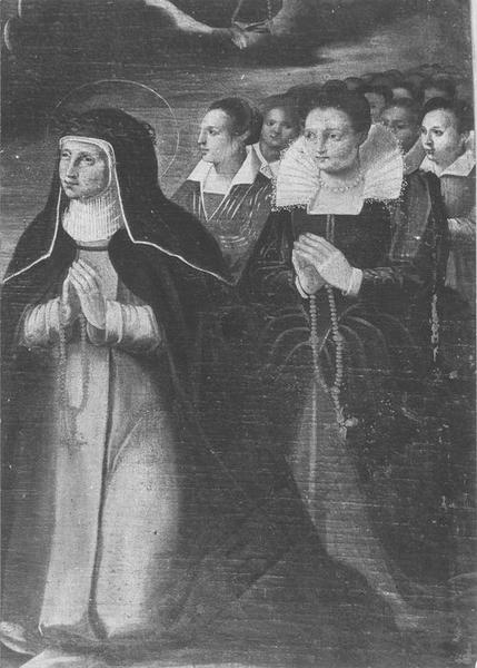 tableau : la Vierge du Rosaire apparaissant à saint Dominique, sainte Catherine-de-Sienne et à d'autres personnages