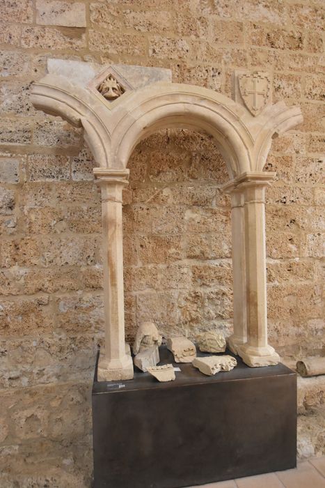 Arc jumelé du cloître composé de deux arceaux reposant sur deux pilastres ondulés, sculptés sur trois faces et sur une colonne octogonale avec sa base et son chapiteau.