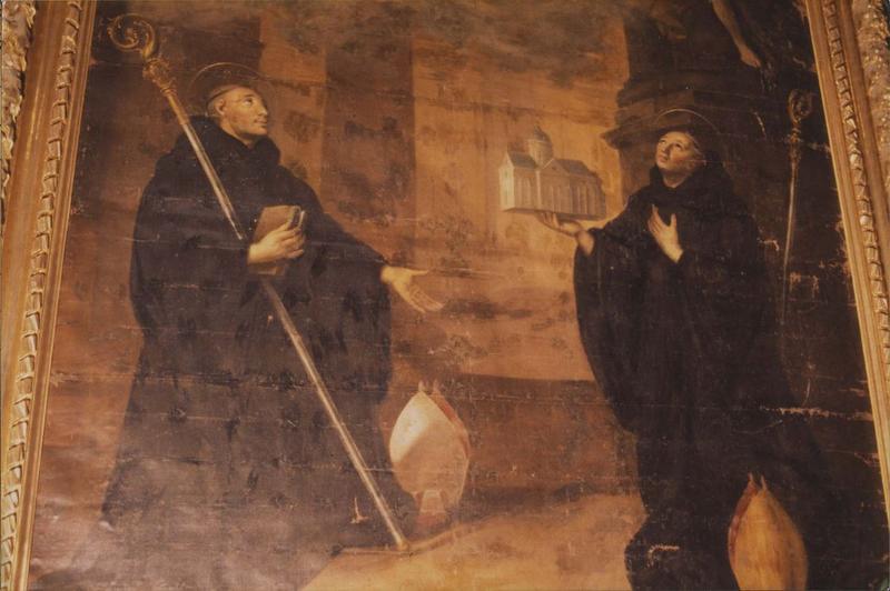 tableau, cadre : Christ en gloire, saint Benoît de Nursie et saint Benoît d'Aniane (le)