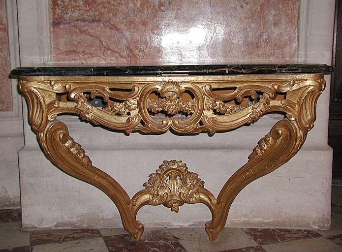 Arrêté : crédence, bois sculpté et doré, dessus marbre, XVIIIème siècle.