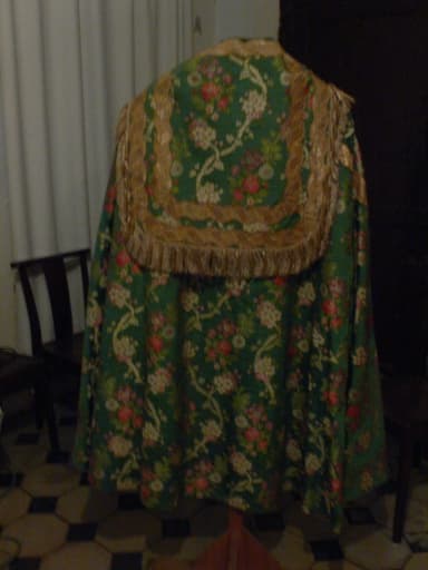 soie (rouge, vert, blanc) ; fil métal : or