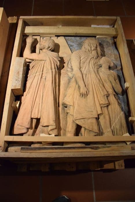 POP | Plateforme ouverte du patrimoine2 bas-reliefs : représentation de 4 pièces de théâtre (Oedipe roi de Sophocle, Le Cid de Corneille, Les Nuées d’Aristophane et Tartuffe de Molière)