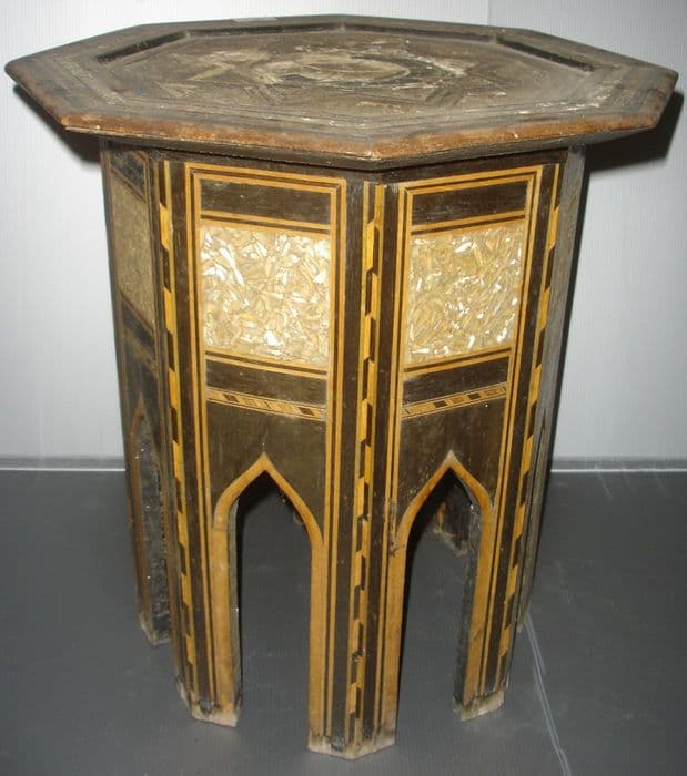 Table basse ou guéridon de style mauresque (avec plateau octogonal et marqueterie de bois et nacre formant une étoile).