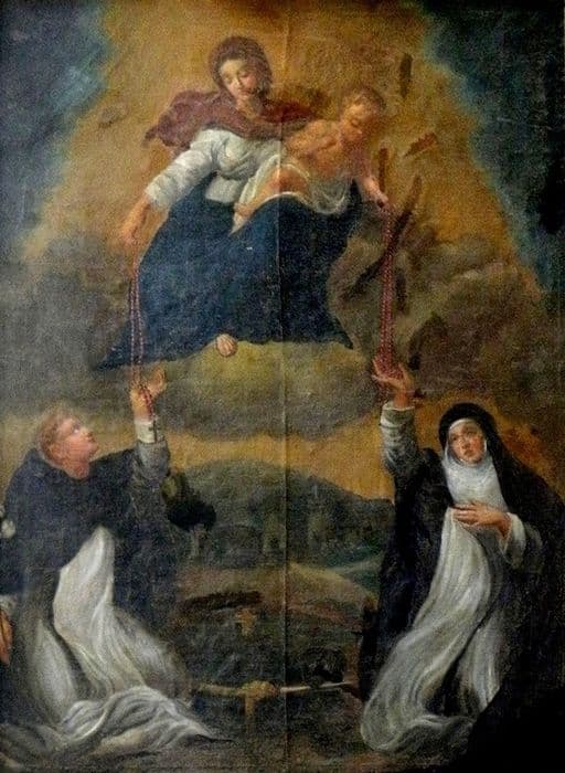 L'autel est surmonté d'un tableau représentant la remise du rosaine, au-dessus duquel est une niche sous fronton triangulaire. Cette contient une Assomption entre deux anges en cariatides et deux colonnettes de marbre. Les niches latérales qui renferment les statues de saint-Appoline et de sainte Agathe sont encadrées par des colonnes de marbre et surmontées de fronton arrondis sommés de pots à feu.