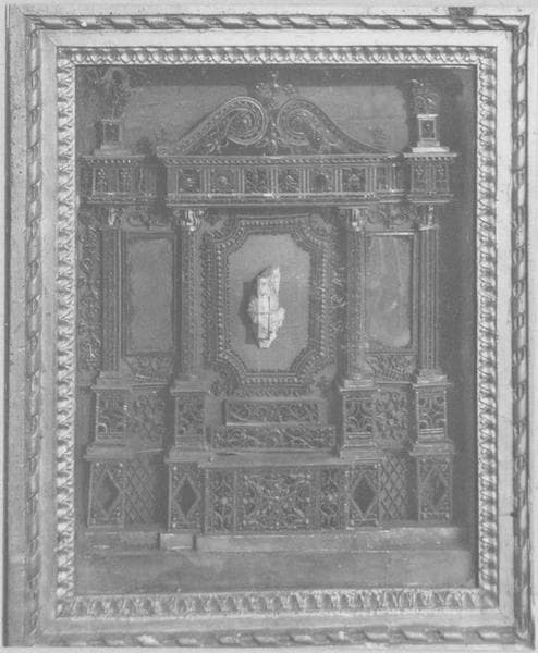 Reliquaires en forme d'autels avec fronton, colonnes, pots à feu.