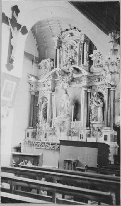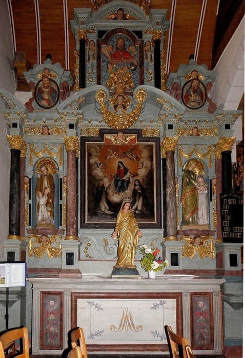 L'autel est surmonté d'un tabernacle et d'une Vierge moderne. Le tableau central est placé entre deux colonnes de marbre rouge accolées à des pilastres noirs. Aux extrémités, au-delà des niches latérales les colonnes sont noires et les pilastres rouges. Les niches (occupées par des statues modernes) sont surmontées de médaillons. Décoration de fleurs et de têtes d'anges.