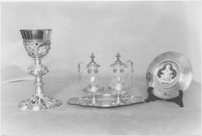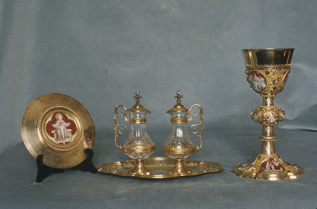 calice, patène, plateau à burettes, burettes (chapelle d'orfèvrerie)