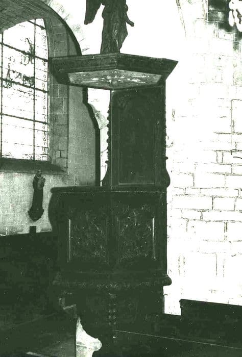 L'abat-voix est une couronne fermée où les fleurs de lys alternent avec les trèfles. Il est surmonté d'un ange. Le dossier est flanqué de deux ailes rectangulaires avec des rinceaux et arabesques. Les cinq panneaux de la tribune ont une ornementation rocaille de coquilles, entrelacs, de palmes et rinceaux. Une frise de feuilles d'acanthe, une autre de rinceaux fleuris s'allongent à la partie supérieure et à la partie inférieure de la tribune et de la rampe. Le cul-de-lampe sculpté de nattes est recouvert d'un lacis de motifs rocaille.