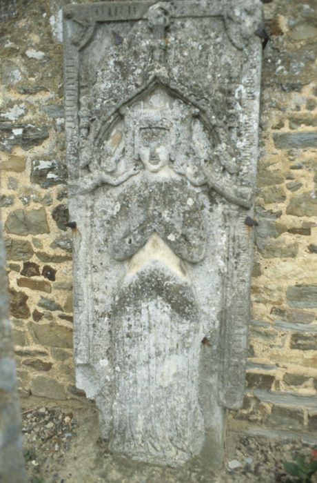 Cette tombe figure une femme en haut relief que l'on dit être une dame de Vauxelles (manoir en Nouvoitou).