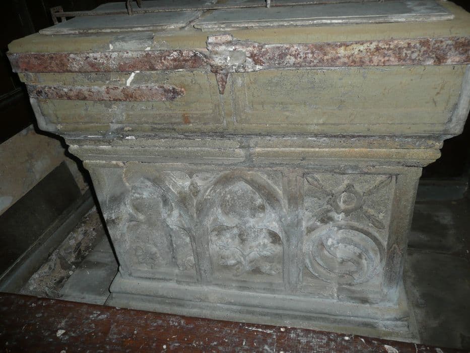 Fonts doubles, de forme rectangulaire, sculptés d'ornements flamboyants.