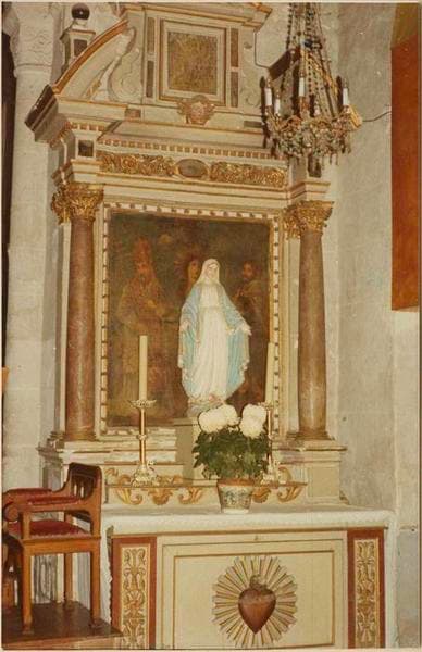 Les retables comprennent chacun un tableau entre deux colonnes qui supportent un fronton interrompu. Ils sont appuyés à l'arc triomphal.